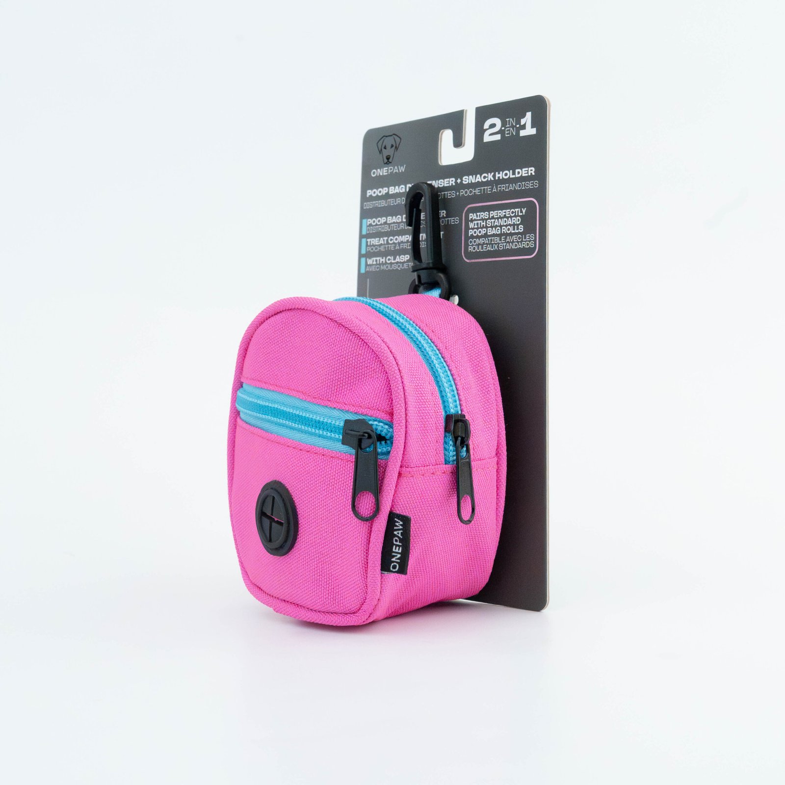 Never leave home unprepared with the One Paw Poop Bag Dispenser and Snack Holder. This clever 2-in-1 accessory attaches easily to any leash, providing a dedicated compartment for waste bags and a separate space for training treats or small snacks. Made from durable 100% polyester webbing, it is built to last through countless outdoor adventures.